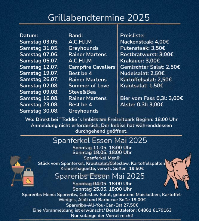 Grillabend und Livemusik in der Hauptsaison | Samstags um 18.00 Uhr vor dem Imbiss
